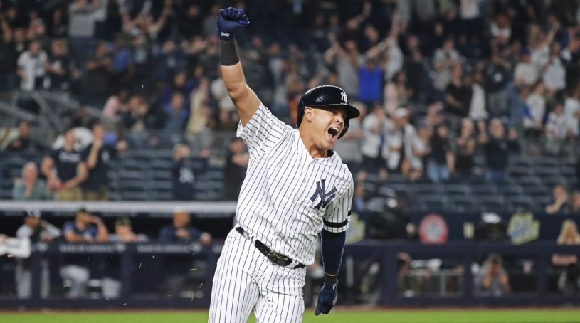 Thairo Estrada, who pinch-ran for Sánchez, scored on a wild pitch during Cameron Maybin‘s pinch-hit at-bat. Three pitches later, Urshela caught up to a 99 mph sinker from Alvarado to send the Yankees and the Bronx faithful home happy.